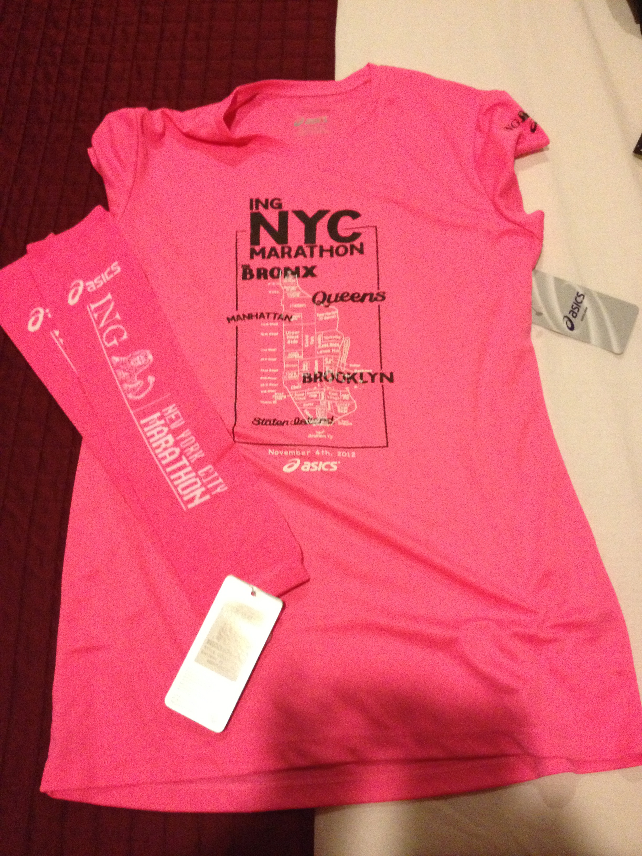 So of course as you all know Hurricane Sandy slammed into NY and the East Coast the very week of the marathon. Airports were shut-down, power was off, people were flooded and some died. It was very tragic. I stood by the TV watching as people were being forced out of their homes. First, I wasn’t sure if I wanted to run it and second, we were not sure if we were even going to be able to fly in. LaGuardia was the last airport to open on Thursday, the day of our flight. The talk began on whether or not the marathon was going to be cancelled. I was very torn about the whole situation but assumed that the people who were making the decision ultimately knew best. Even on Thursday morning as I was packing watching the recovery efforts on the TV I cried. We kept an eye on the flights and it was on time.