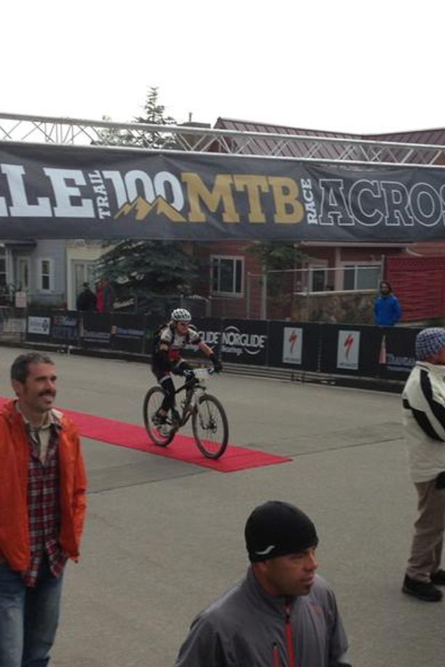I made my way towards the top of the first St. Kevins climb, where I had been 12 hours ago. Wow, I had been doing this for 12 hours. There were some steep short climbs at the top then a nice steep descent. I made it down nice and quick, it felt good. Then made my way on the dirt path to the trail, which seemed to take forever, I crossed over the cow grates and thought that I was home free. Seriously, this was not home free, the dirt road was sandy making it hard to ride on, a few miles later I got to the road then off the road on to another dirt road the route followed the tracks for a few miles, I remember Todd at camp a 20X Leadville finisher warning me about this section and saying, it isn’t over yet. Well as you turn off this road onto another dirt trail known as the Boulevard you hit a steep pitched hill requiring further dismounting then its uphill for about 3.5 miles. As I watched the clock tick I truly questioned if I was even going to finish in 13 hours. The finish line never seemed to come, this partly because the race isn’t really 100 miles it’s more like 103 and believe me those 3 miles are hard! 3 miles at 3% grade at the end of this race took me 30 minutes. As I made the turn on to 6th Ave I looked at my watch I had 15 minutes and I could see the finish line. I climbed up the hill with all the energy I could muster and rode over the red carpet at 12:47. Good enough for a finish and good enough for a medal. No buckle but a finish is a finish. Funnily the bride and groom just came in just before me so I held back in order to not get in their pictures!!